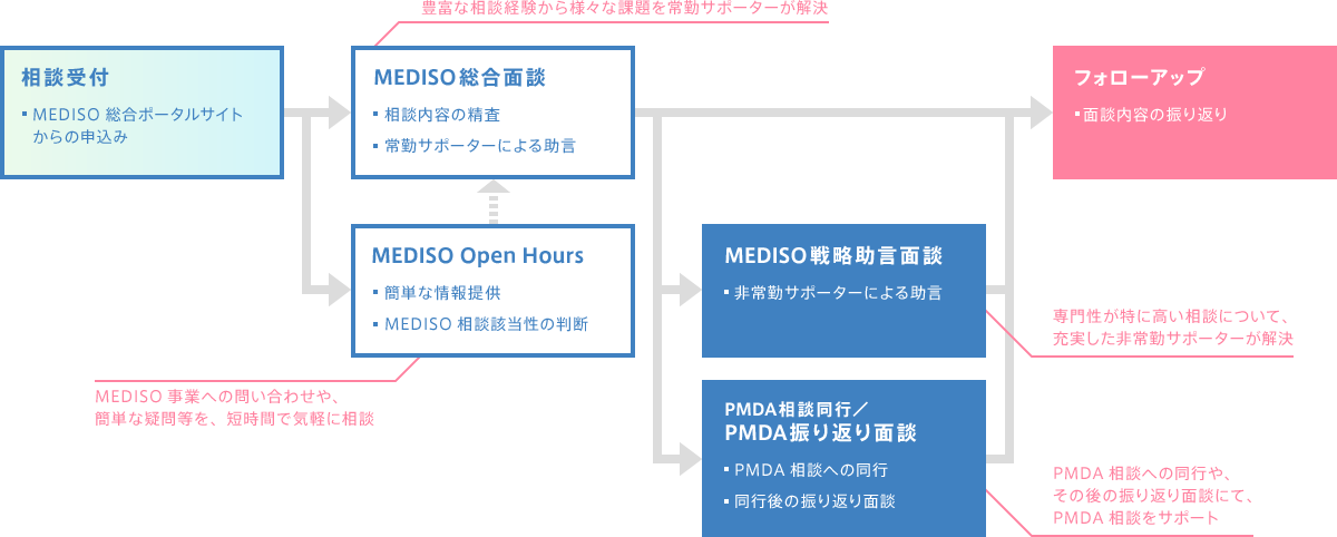 ●その後、専門性が特に高い相談については、非常勤サポーターによるMEDISO戦略助言面談を実施します。