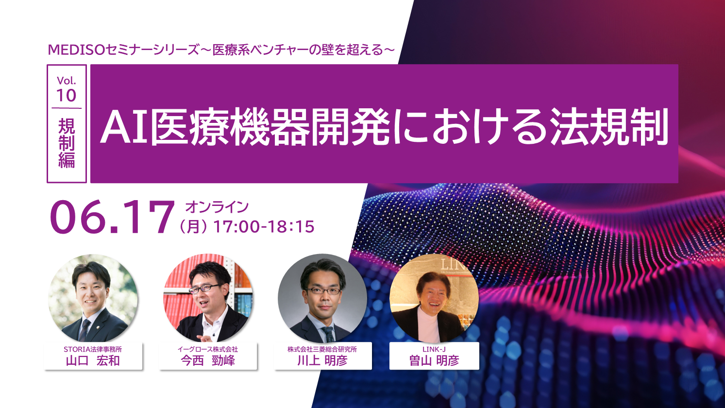 2024.06.03MEDISOセミナーシリーズ~医療系ベンチャーの壁を超える~ vol.10規制編:AI医療機器開発における法規制