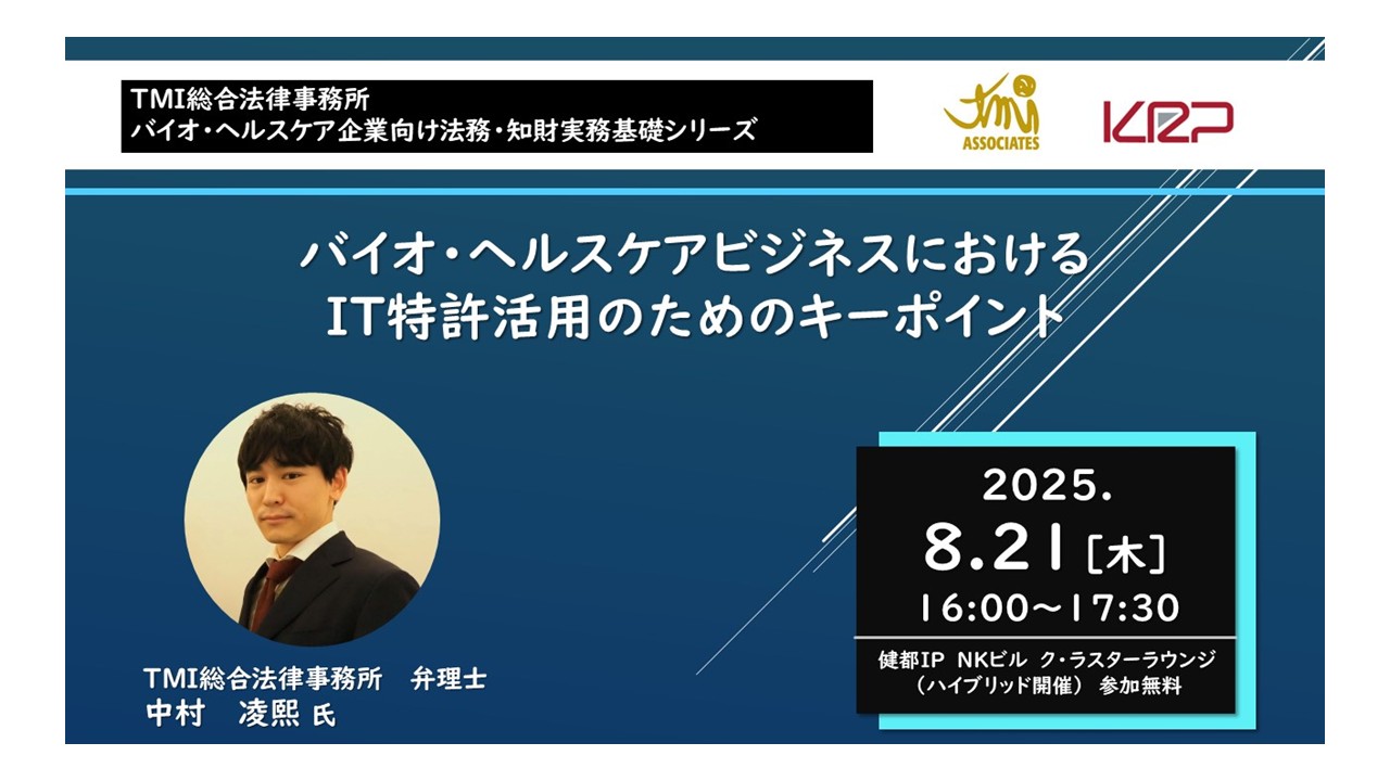 2025.07.11【無料セミナー】バイオ・ヘルスケアビジネスにおけるIT特許活用のためのキーポイント