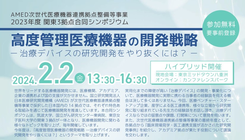 2024.01.26AMED次世代医療機器連携拠点整備等事業関東3拠点合同シンポジウム「高度管理医療機器の開発戦略 ― 治療デバイスの研究開発をやり抜くには? ―」