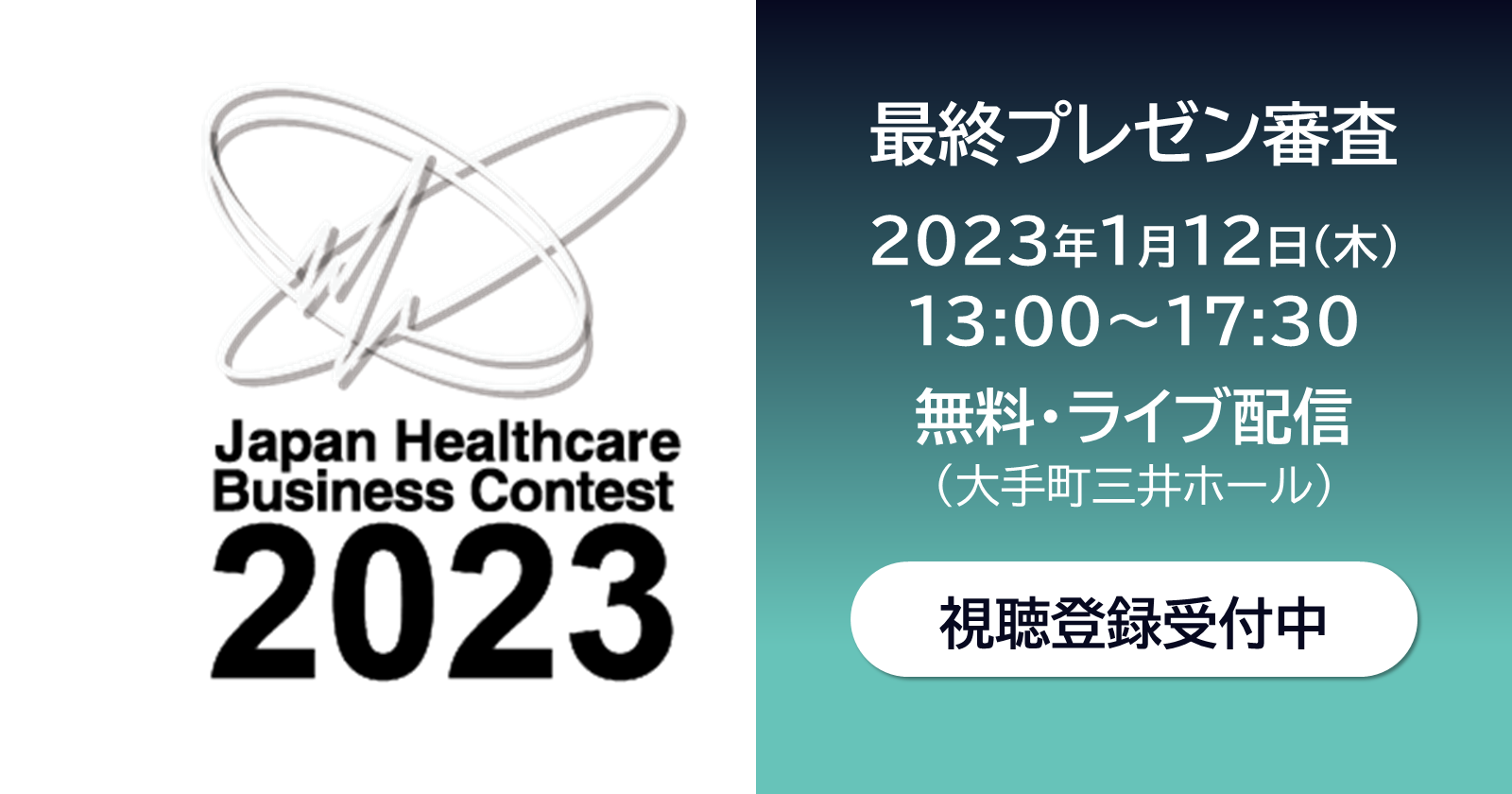 2022.12.12【広報】ジャパン・ヘルスケアビジネスコンテスト(JHeC)2023 最終プレゼン審査 一般視聴者募集のご案内