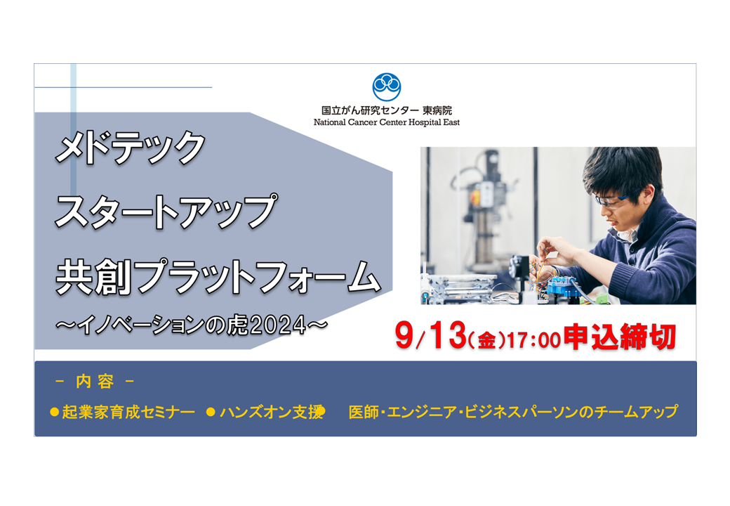 2024.08.29国立がん研究センター東病院『メドテックスタートアップ共創プラットフォーム ~イノベーションの虎2024~』公募開始のご案内